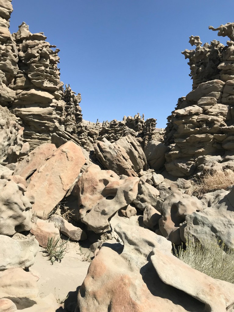 These are reminiscent of the Hoodoos at Bryce Canyon or the formations in Goblin Valley. These formations are smaller and much more fragile. Think of how one would make spires and minarets on sand castles at the beach…drizzling wet sand down upon the walls of the castle. A local told us that after a good rain the formations can change pretty significantly. No rain in sight so we will take his word for the time being.