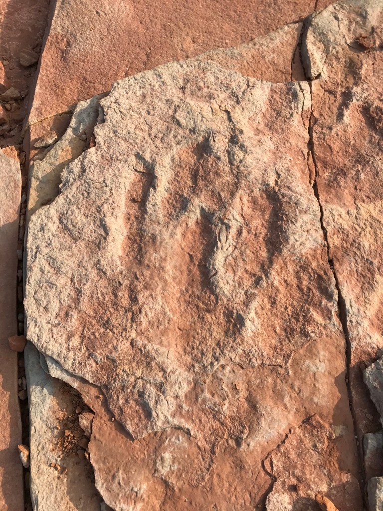 Dilophosaurus made these tracks. He was an eight foot tall, two legged, two clawed apparently nasty carnivore.