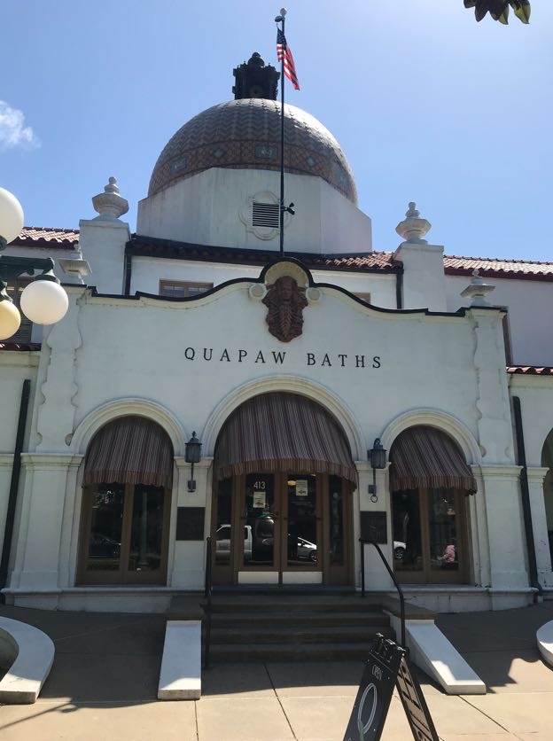 Hot Springs Natural Reservation was established by an act of congress in 1832, forty years before Yellowstone. Hot Springs would come under the purview of the Park Service in 1916. Between 1832 and the 1870’s the waters at Hot Springs were taken over by private interests. The courts ruled these to be illegal takings and the federal government began to manage the Hot Springs. They built free bath houses and contracted with private companies to build other bath houses with overnight accommodations. These were all wooden structures which burnt down in the early 1900’s. The wooden bath houses were replaced with the beautiful stone bath houses we see in Hot Springs today.Hot Springs became a haven for health enthusiasts. From the 1920’s to the mid 1950’s ‘Taking the Waters’ was all the rage. Hot Springs promoters claimed ‘Taking the Waters’ could be beneficial for ailments from Asthma to Whooping Cough and everything in between. Dueling restaurants, Angels and Devils, across the street from each other in Hot Springs.