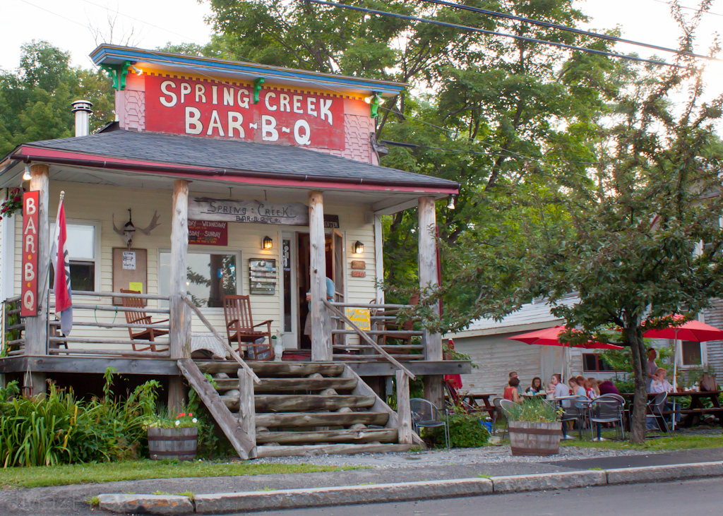 A rough and rangy backpacker who had just come down from the North on ‘The Trail’ through the 100 Mile Wilderness asked about where to eat. Mary Ann , “just had a good burger and fries at the Spring Creek BBQ”. “The fish taco plate was quite good also”, I add. “Where is it? I will have both.” Off he went to his ‘surf and turf’ repast.