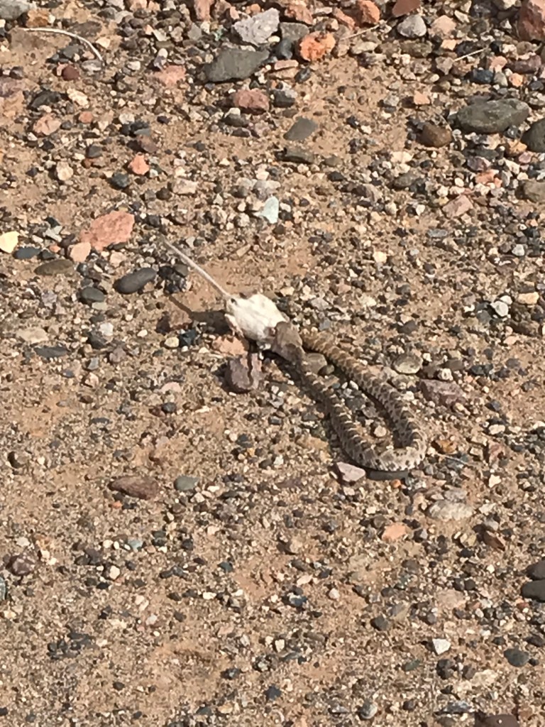 Interesting creatures to entertain one along the way, Eighteen inch rattler trying to down a meal to help make it through the dormancy of winter.