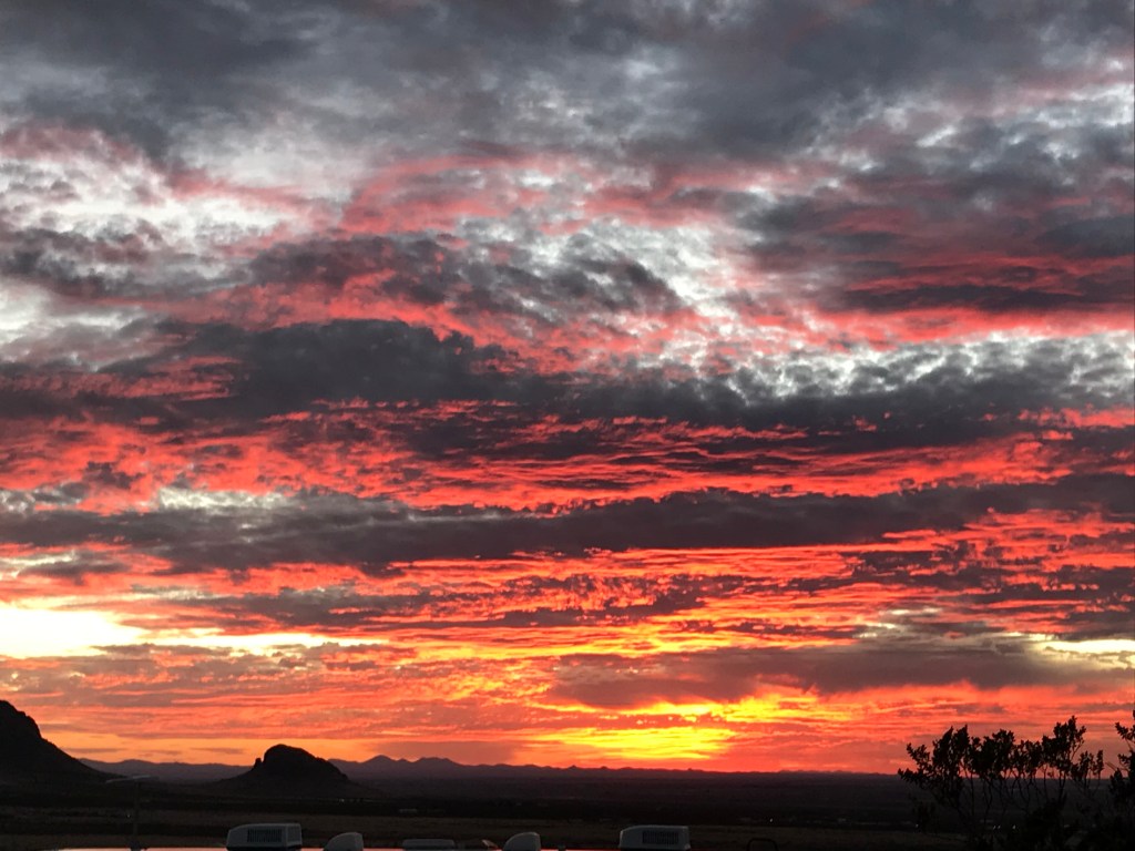 A nice sunset on the Little Florida Mountains of Southwestern N.M. greeted us at Rockhound State Park.