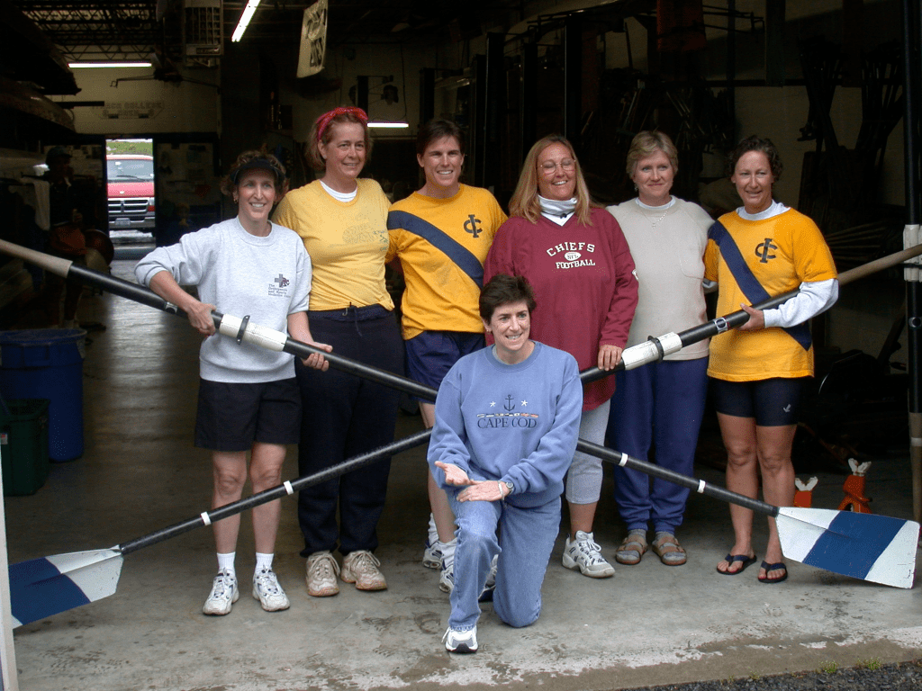 Inaugural Ithaca College Women’s Crew team on the 25th anniversary of their NCAA Small College National Championship win at the Dad Vail Regatta in Philadelphia (1977). Mary Ann standing far right. Without Title IX this may never have happened. After all, a few years earlier Mary Ann had to swim on the Men’s Swim Team in high school.