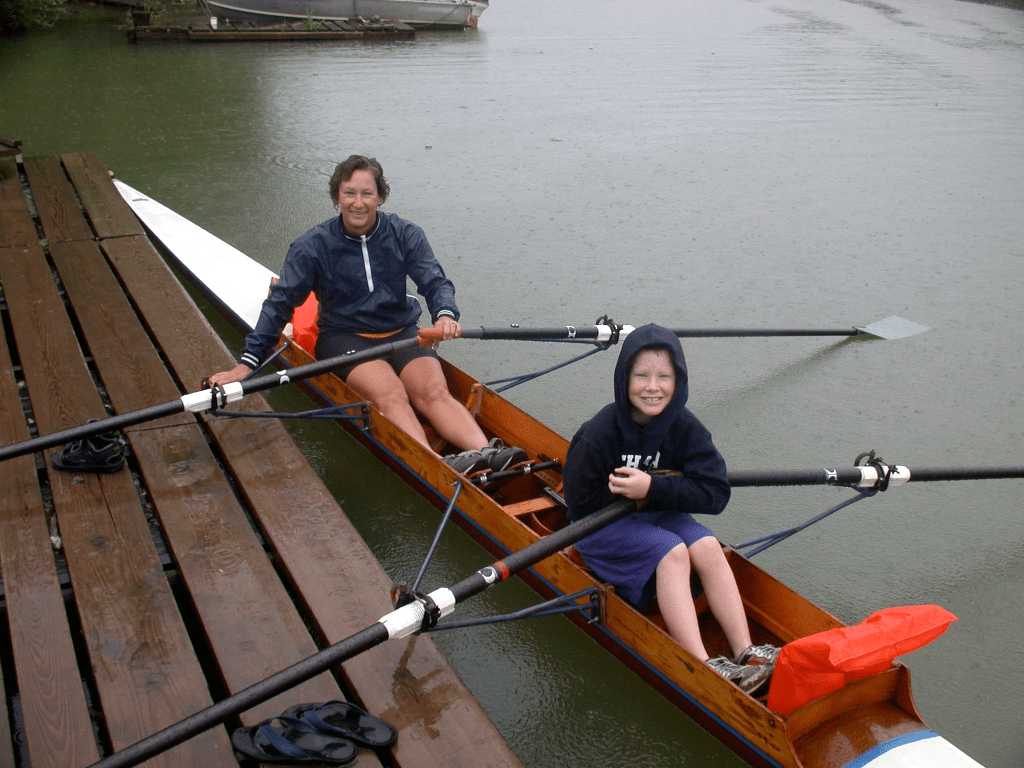 Mary Ann and Andy getting ready to take to the water in a pair in celebration of the 25th Anniversary.