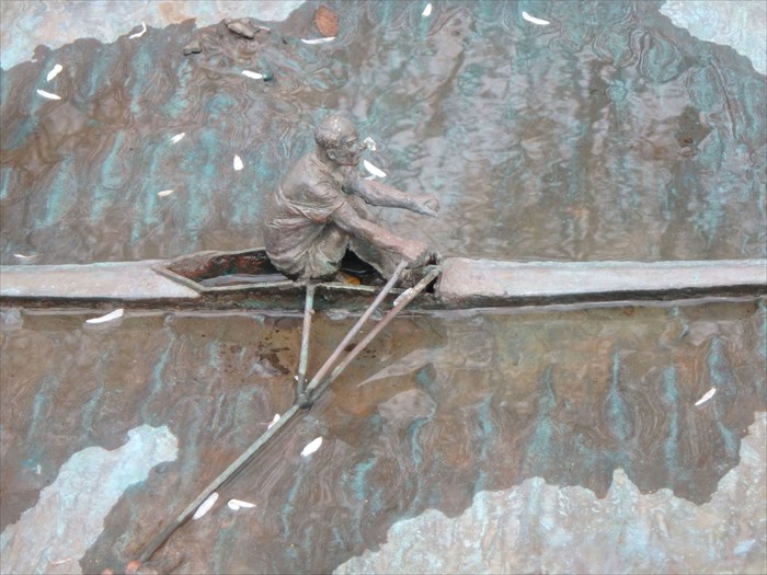 The sculpture of Mary Ann’s dad, Ted, in Centerway Square, Corning, NY. Mary Ann is from a sculling family. Her Grandfather, Lloyd Sprague, was on the Syracuse Eight which won the college national championship in 1916. Her dad rowed at Cornell. Later in life he took the sport back up and was ranked in the top five worldwide in singles for his age group. He also rowed with ‘The Golden Eight’, a team of seniors which competed worldwide. Mary Ann was on the inaugural women’s crew team at Ithaca College. She and her teammates won the small college championship at the Dad Vails in Philadelphia her junior year.
