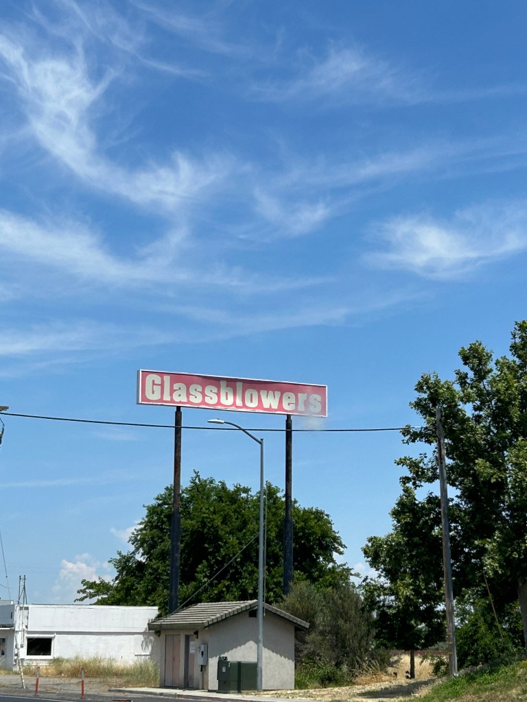 In the early 1970’s a glassblower, Ray Hansen set up his ‘Glory Hole’ in Corning, CA. Ray apparently thought the Corning town name would bring in customers as Corning, NY is the ‘Glass Capital of the World’. Ray also sold locally made olive oil and balsamic vinegars. Times were good. Then Interstate 5 wasconstructed north from Sacramento and bypassed Corning to the West. Business slowed.
