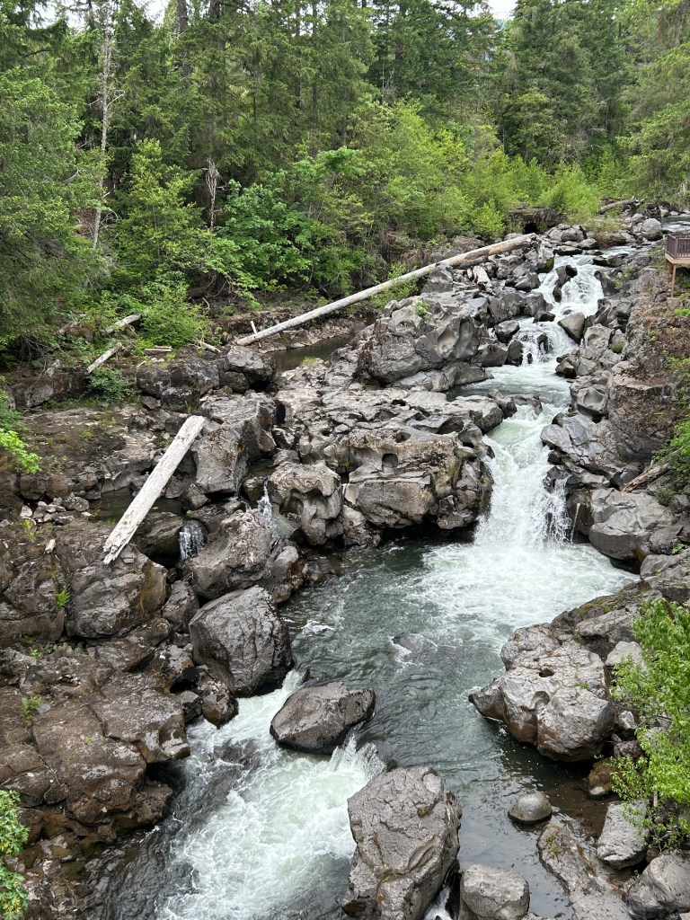 The Rogue River gets its start at a small spring in the Cascade Mountains just west of Crater Lake. The Rogue flows 215 miles to the Pacific Ocean. French trappers named the river La Riviere aux Coquins, The River of the Rogues. They did not think very highly of the local Natives.