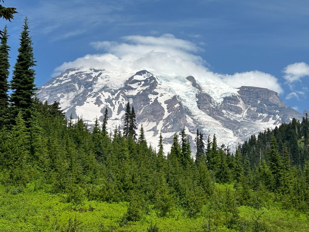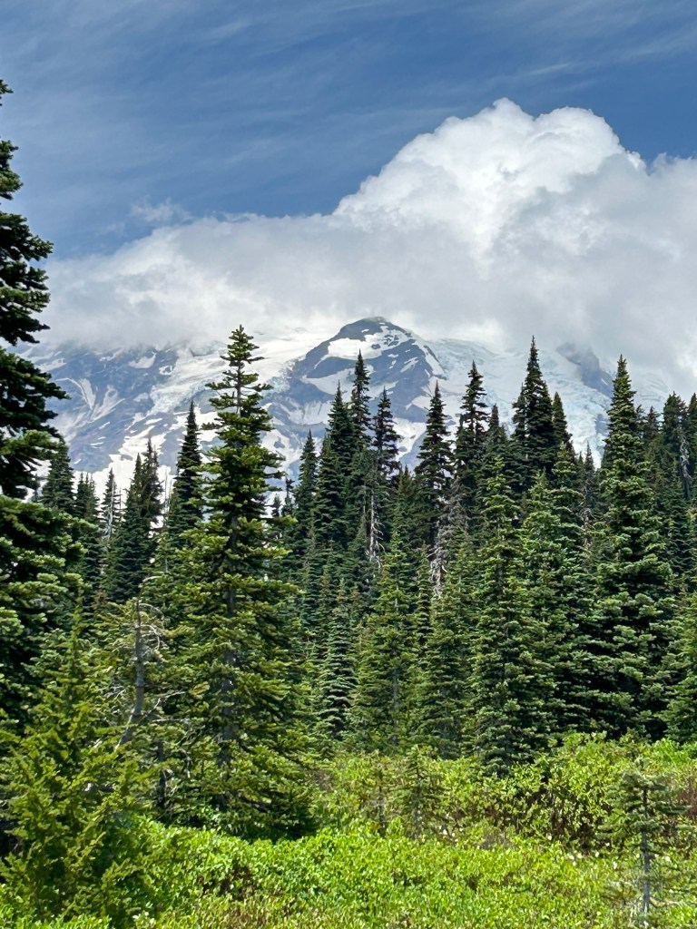 Tahoma is more often than not shrouded in clouds. We were lucky to get a mostly cloud free view early on. Tahoma towers over the surrounding terrain making a landmark visible for a hundred and fifty miles, before our industrial days.