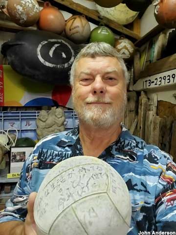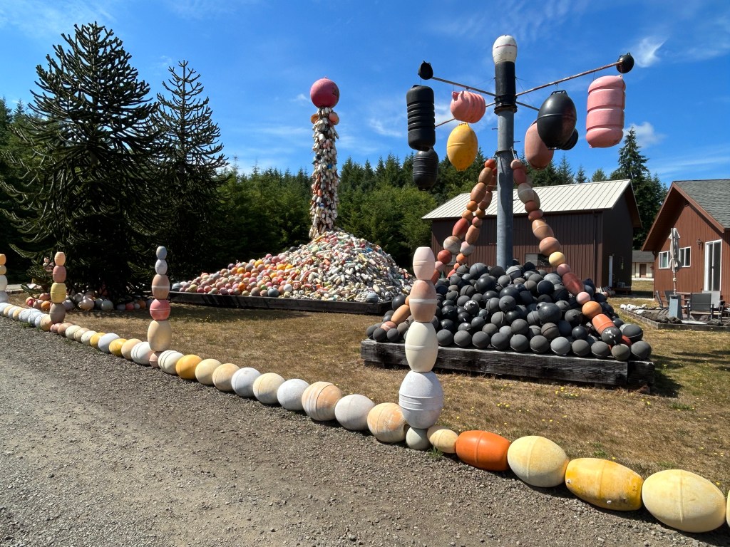 John Anderson, Andersonville Avenue, Forks, Washington, grew up in Forks, loved walking the beach. He became the go to plumber in Forks. Twenty years ago with his business well established, John took his beach walking to a new level and became a serious beachcomber. All of the items in the pictures that follow were collected by John or his two brothers and two brothers-in-law. Their wives got tired of their ‘beachcombing treasures’ littering their yards and all of the boys treasures ended up with John. John’s wife puts up with his beachcombing. Bob puts up with her never ending expanding and changing gardens.