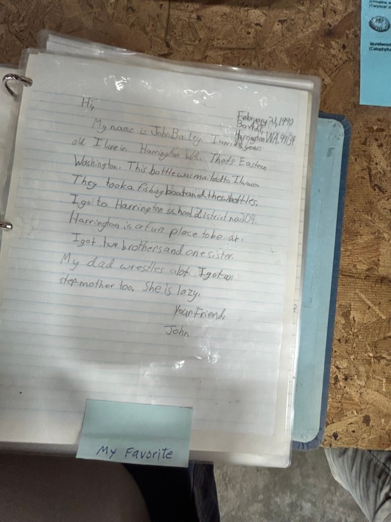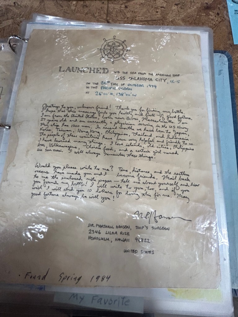 This is the oldest message in a bottle John ever found. He sent it back to the address in the letter. He never received a reply.