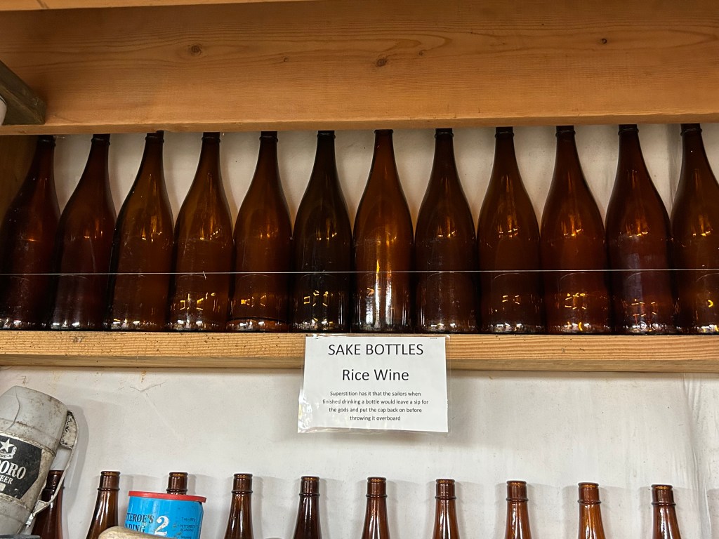 Until the 1990’s when the Japanese government cracked down on the practice, as Japanese sailors finished a bottle of Saki they would leave a little in the bottle and toss it into the sea for the Gods of the Sea to enjoy.
