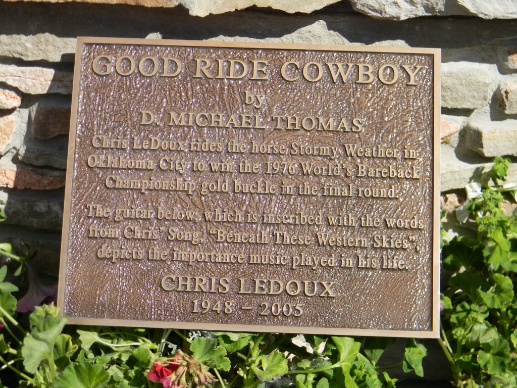 Chris was born in Mississippi. His father was in the military. While still a tyke the family moved to Wyoming where Chris’s grandparents lived and where his parents were born and raised. Chris would always call Kaycee, WY home. This statue is at the Chris Ledoux Memorial Park in Kaycee.